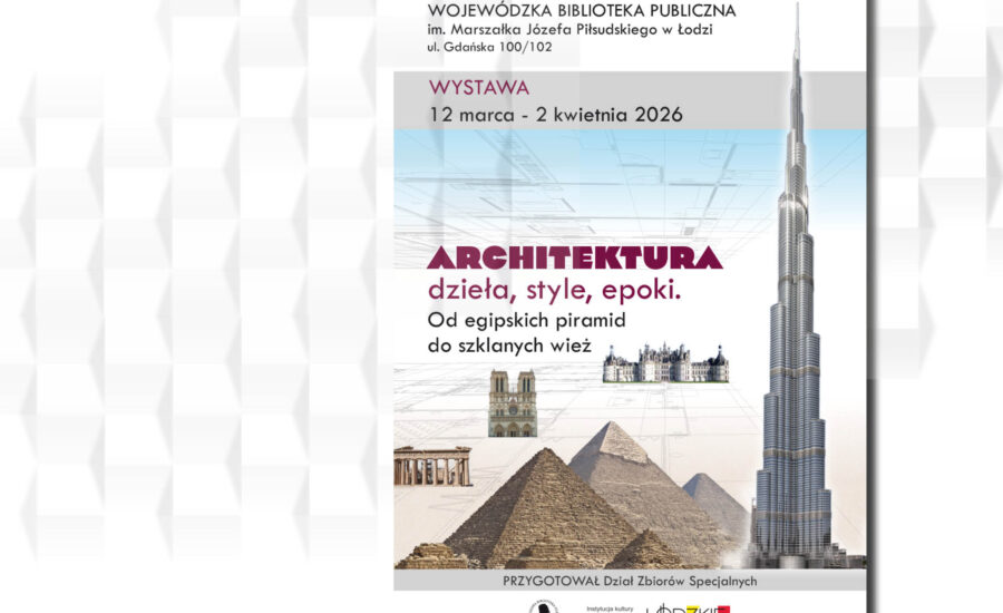 Wojewódzka Biblioteka Publiczna im. Marszałka Józefa Piłsudskiego w Łodzi zaprasza na wystawę stacjonarną „Architektura: dzieła, style, epoki. Od egipskich piramid do szklanych wież”.